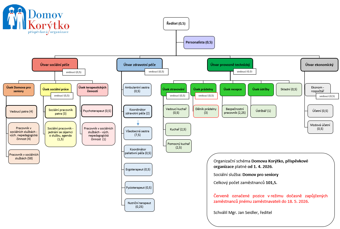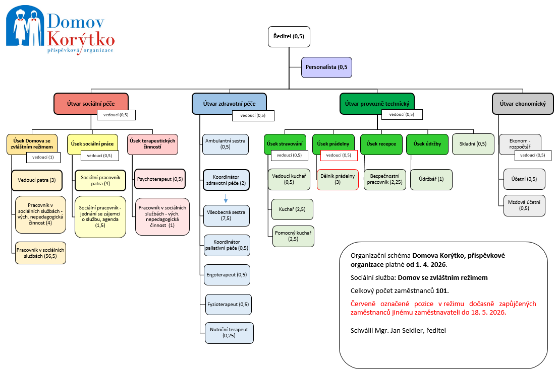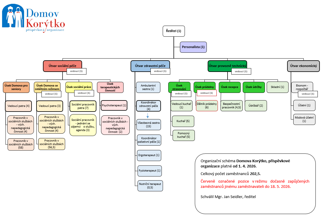 Organizační schéma Domov Korýtko, příspěvková organizace od 1.4.2026