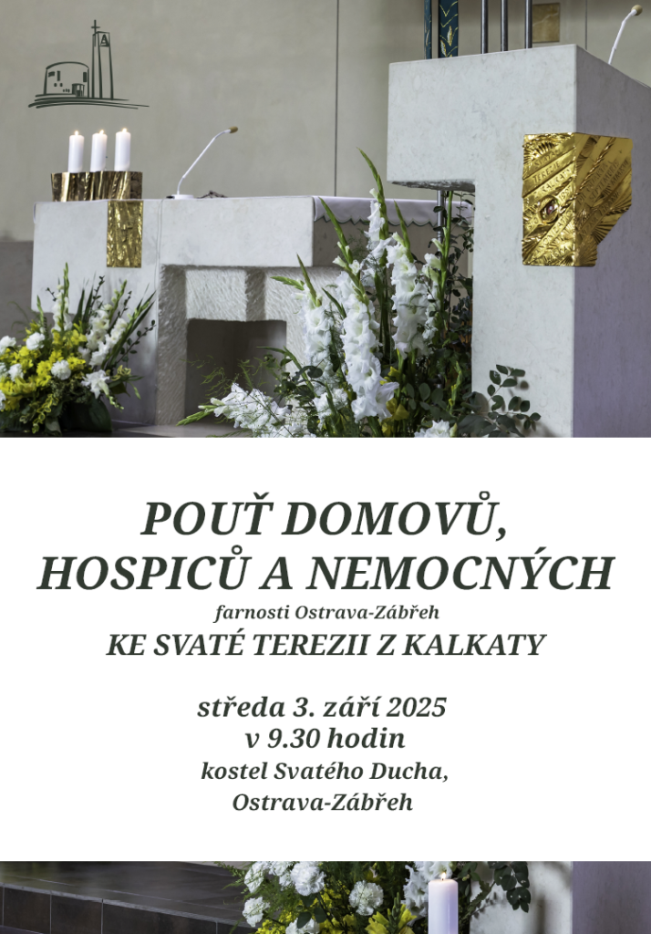 Společně s klienty se vypravíme dne 3. září 2025 do kostela Svatého Ducha v Ostravě Zábřehu na pouť domovů, hospiců a nemocných.